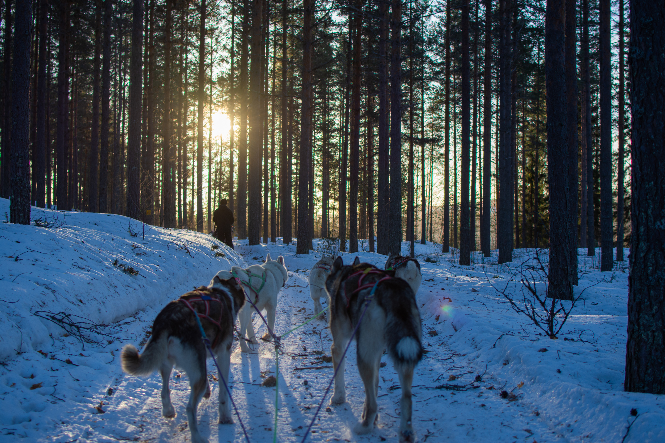 A definite highlight for me was the mushing (dog sledding). We got to drive a two-person sled, with one person sitting and the other driving. The dogs take care of most of it (they follow the guide’s sled), but you have two brakes that you need to apply on downhills or when you want to stop. On the uphills, you also hop off and run to help push the sled up. The guides were super nice, and we learned a lot about what it takes to look after and manage mushing dogs. They know each of the ~40 dogs by name, experience, and personality. They have to account for which dogs get along with each other and their relative experience when picking the sled team. The lead (front) dogs also receive special training such that they can make turns on verbal command. It was a fantastic experience, and really made me appreciate how special these animals are.
