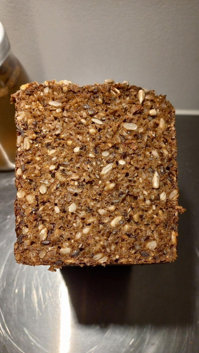 In Feb I tried making rugbrød for the first time – mostly to practice for when I head back to Aus/NZ one day (it’s really hard to find there). My undertanding is that all rugbrød is made with sourdough due to the special characteristics of rye flour. Rye has a much lower quantity of gluten than wheat, relying instead on pentosans (polymers of 5-carbon sugar) for texture. Rye also typically has a much higher (and more active) amylase content (enzyme that splits amylose into simple sugars). This is where the sourdough comes in, as the acidity lowers the amylase activity – preventing all the amylose from being chewed up, which would result in a gummy texture. I honestly found it much easier than my usual wheat sourdough loaf, though maybe I got lucky with the fermentation timing!