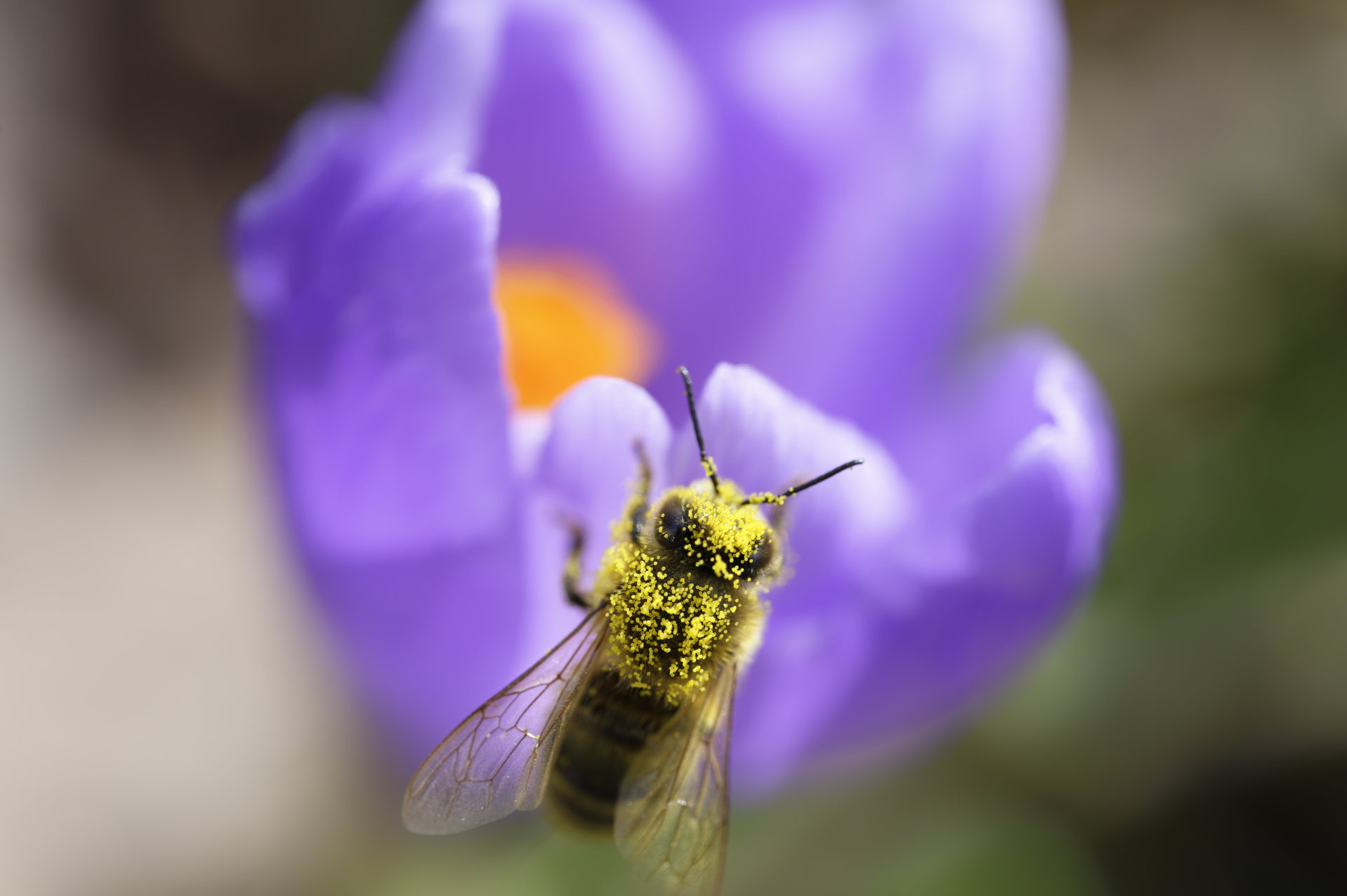 A general rule in macro photography is to have your subject sharp and in focus. However, breaking photographic rules can sometimes lead to successful images. In this case, the bumblebee being out of focus add depth to the image and gives the sense that the bee has somewhere else to be. The softness also creates a dreamy feel, and the lack of sharp textures gives more focus to the vibrant colours.